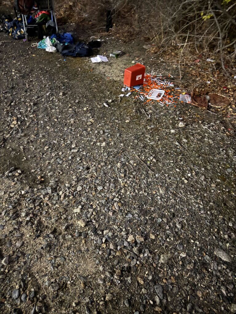 According to this source, the City of Portland had not sent anyone to clean up the used needles in the intervening 24 hours. He then contacted the Portland Police Department. An officer did stop by and acknowledged it was a “significant problem” but said he could not transport the needles in his vehicle, the source said.