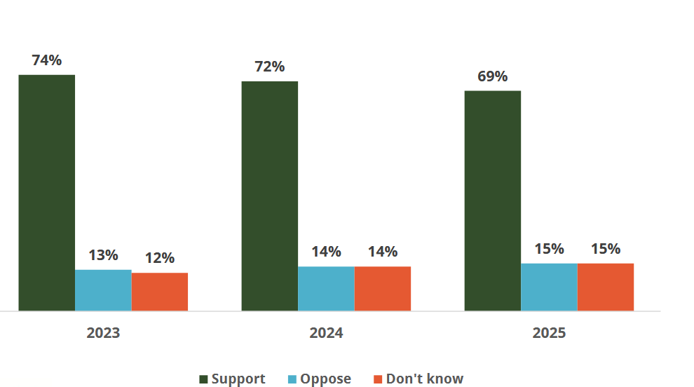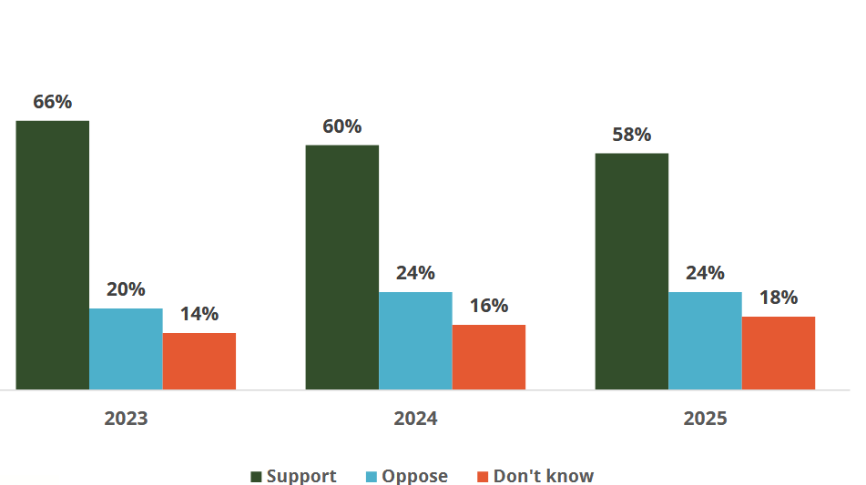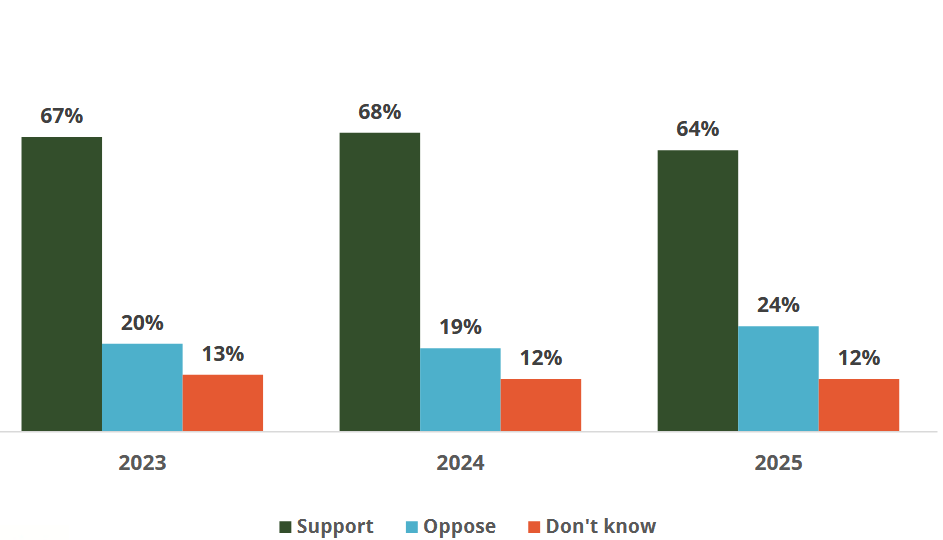 63 percent of respondents expressed support for ESAs in this survey, a share that has remained consistent over the past few years.