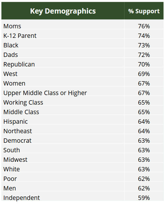 58 percent of respondents, including 66 percent of K-12 parents, expressed support for such a program.
