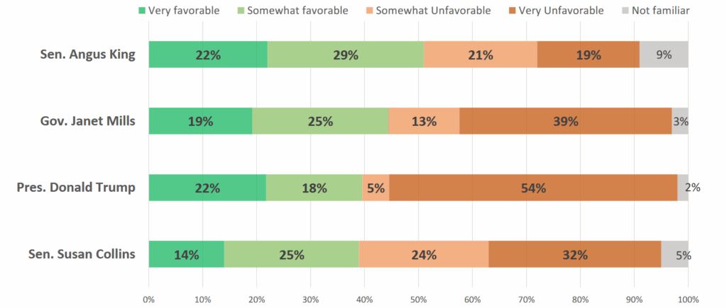 Sen. Angus King (I), known to primarily caucus with Democrats, is the only major politician to have received a net favorability rating in the December poll, showing an increase of 11 points compared this past May.