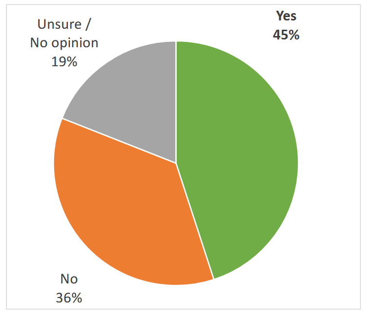 A plurality of Mainers, 45 percent, indicated that they believe the state should bring itself into alignment with federal policies regarding the participation of transgender individuals in athletics in order to continue receiving federal funding.