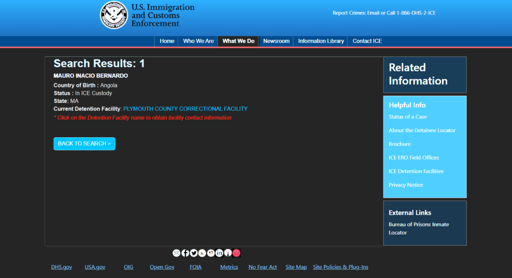 York County Corrections Officer Mauro Inacio Bernardo is currently in ICE custody in Massachusetts and is being held at the Plymouth County Correctional Facility, according to ICE records.