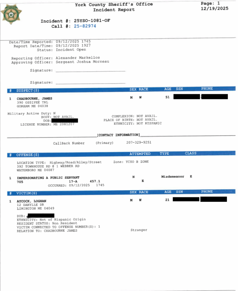 The Maine Wire attempted to reach out to Chadbourne for comment via the phone number listed for him on the incident report, but the number appears to have been deactivated.