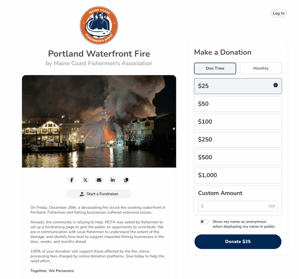 In response, the Maine Coast Fishermen Association announced it has established a fundraising campaign at the request of local fishermen to help those affected recover from the fire. The fundraiser is intended to provide the public with a direct way to support working fishermen whose livelihoods were disrupted by the blaze.