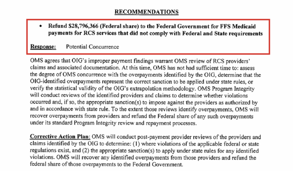 The auditโs sample was a perfect 100-for-100: every single โenrollee-monthโ reviewed by the OIG contained errors, suggesting a lack of oversight, or perhaps no oversight, for Rehabilitative and Community Support (RCS) services. Investigators found that 81 percent of sampled months lacked required comprehensive assessments or necessary staff and parent signatures, meaning there was often no valid proof that care was ever authorized.