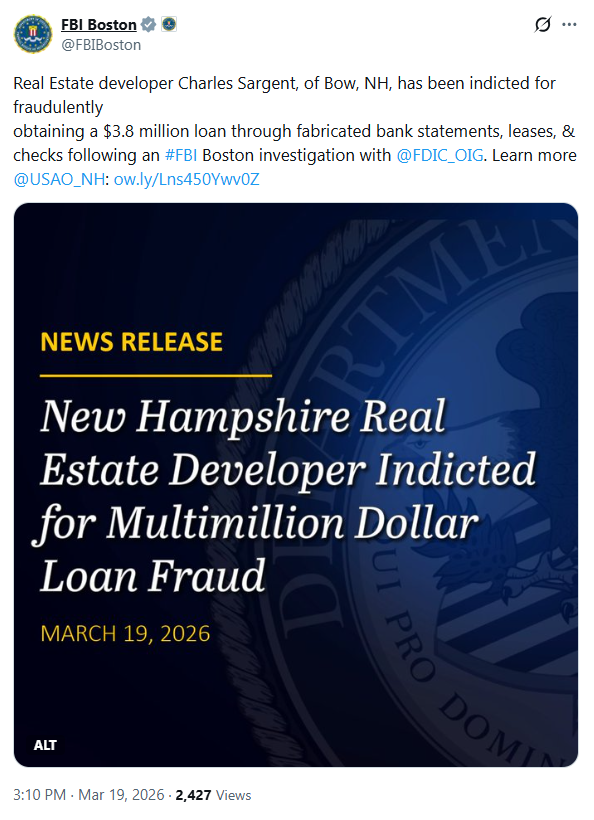 The latest indictment in New Hampshire serves as a strong reminder of federal authority efforts in the region to protect the integrity of our nation’s financial systems while serving communities across the northeast.