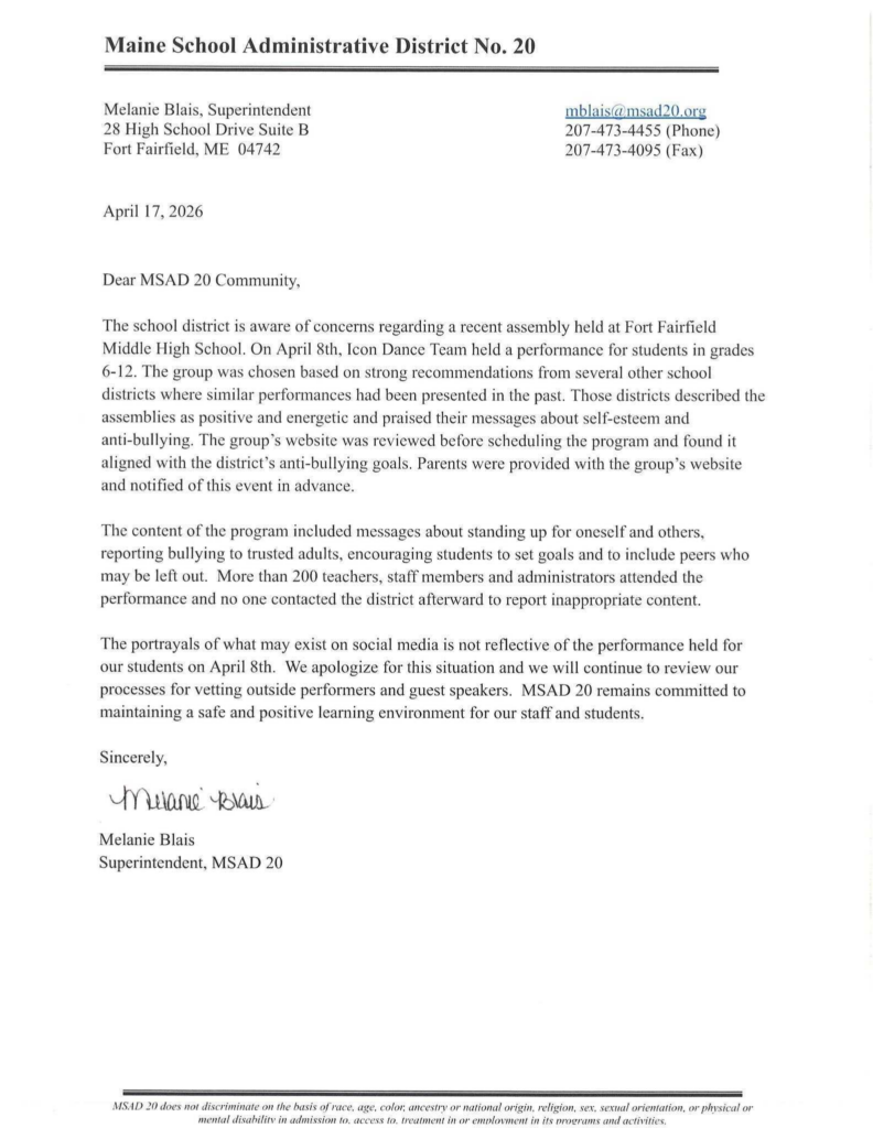 Maine School Administrative District (MSAD) 20’s Fort Fairfield School sparked controversy after it hosted a dance performance from a group featuring a performer by the name of “J-Line” known for his sexualized online presence and LGBTQ activism.