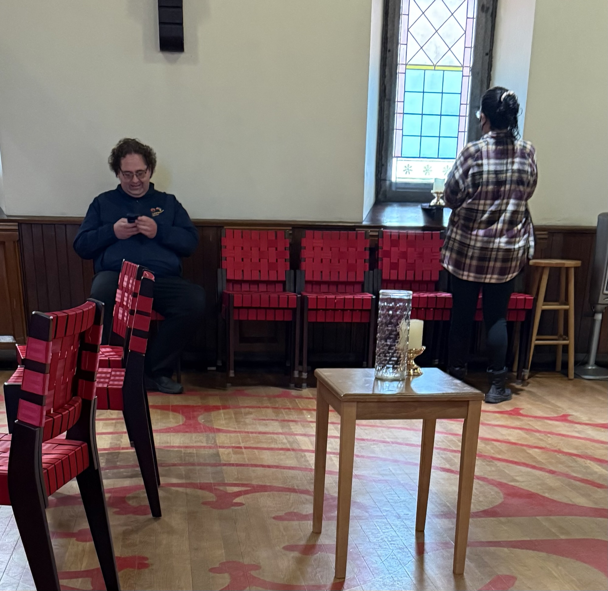 During the roughly 45 minutes this reporter remained at the event, attendance appeared light, with fewer than eight people present. There was no broad greeting to attendees, no structured discussion, and no clear public-facing conversation. Instead, those in attendance remained in small groups, standing and talking among themselves.