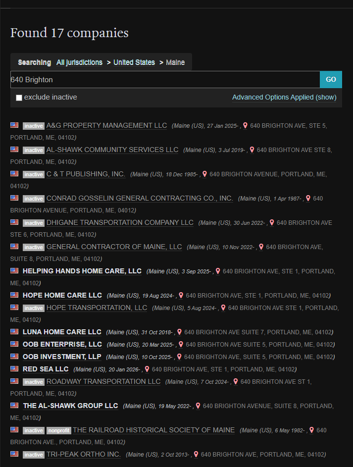 Luna’s address, 640 Brighton Ave., Portland, appears to be yet another single-building hub for home healthcare businesses drawing millions in Medicaid funding. According to business records, it also hosts Helping Hands Home Care, Hope Home Care, Al-Shawk Home Healthcare, and, until recently, Saveplus Home Care Services.