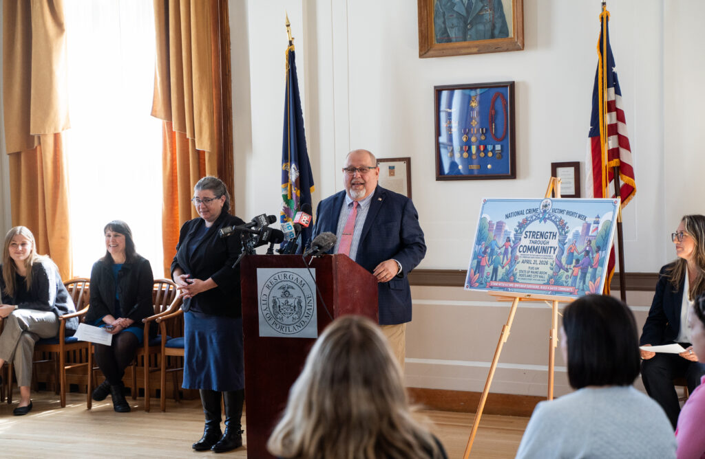 PORTLAND, Maine — Portland Mayor Mark Dion opened Tuesday’s National Crime Victims’ Rights Week press conference at Portland City Hall, welcoming the crowd and setting the tone for an event centered on victims, survivors, and the advocates who work to support them.