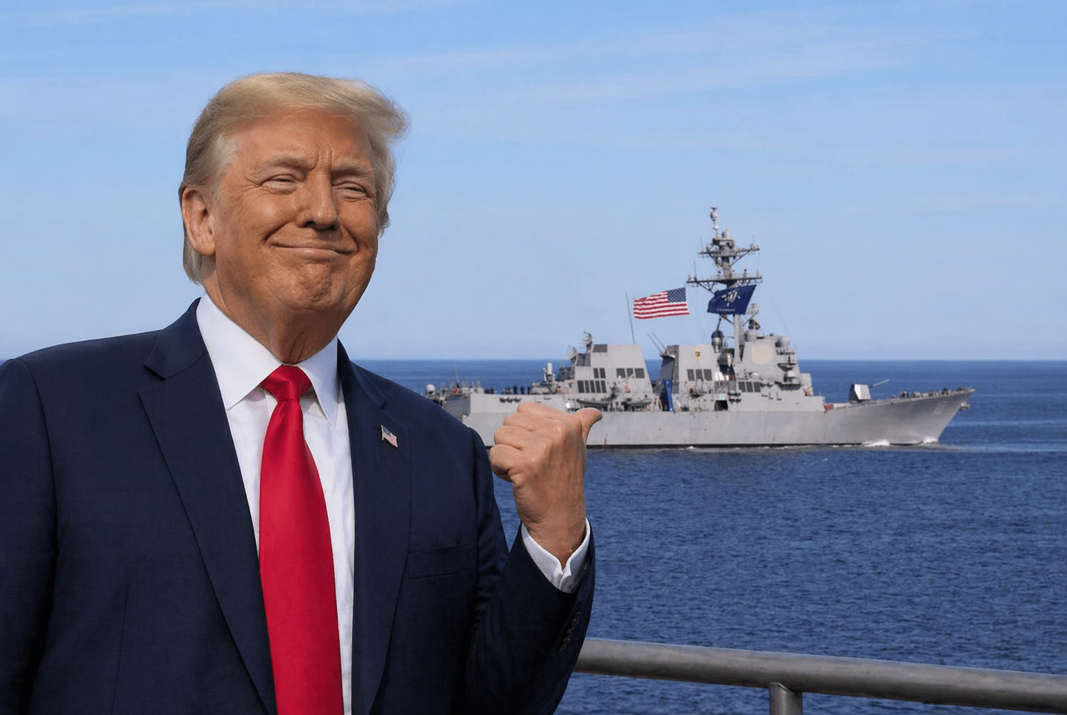 The 9,200-ton guided-missile destroyer fired on the Touska with its five-inch gun, disabling its propulsion in the Gulf of Oman before Marines boarded and seized it, Trump said.