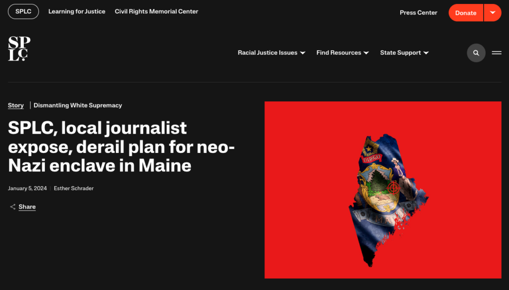Liberal news outlets were more than happy to cite the SPLC as a legitimate arbiter of what speech and political conduct should be allowed in polite society. Just yesterday the Bangor Daily News published an article invoking the disgraced leftist nonprofit to tar conservative influencer Libs of TikTok as “an extremist.” In 2024, almost every outlet in Maine joined forces with SPLC to promote a hoax claiming neo-Nazis were building a paramilitary camp in rural Maine.